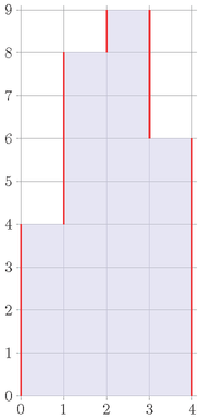 给定 列的直方图,每列有个高度 ,一个图的丑陋度为裸露在外的竖线长度和,如: